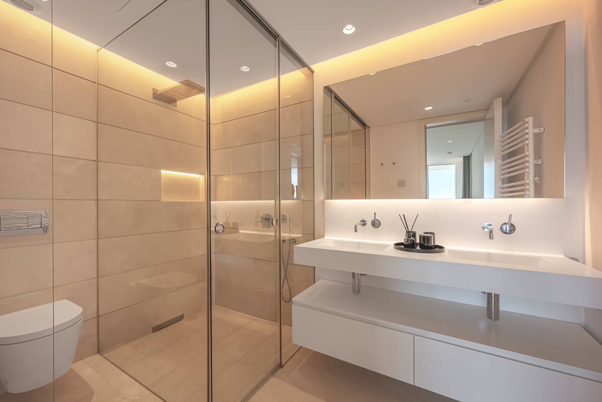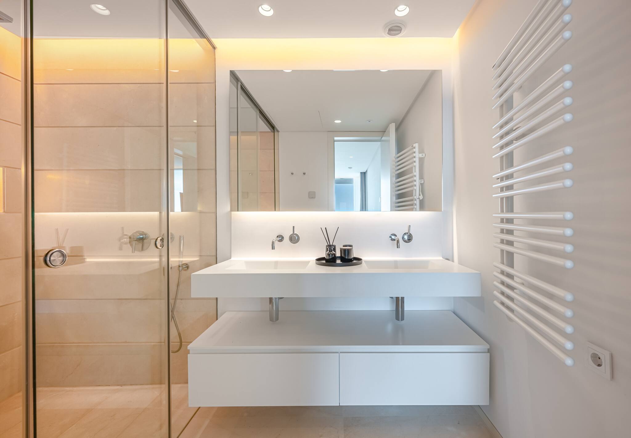 In total, the apartment has two beautiful bathrooms (one ensuite): complete and with ample washbasin, toilet and shower space. One of them also has a bidet and bathtub.