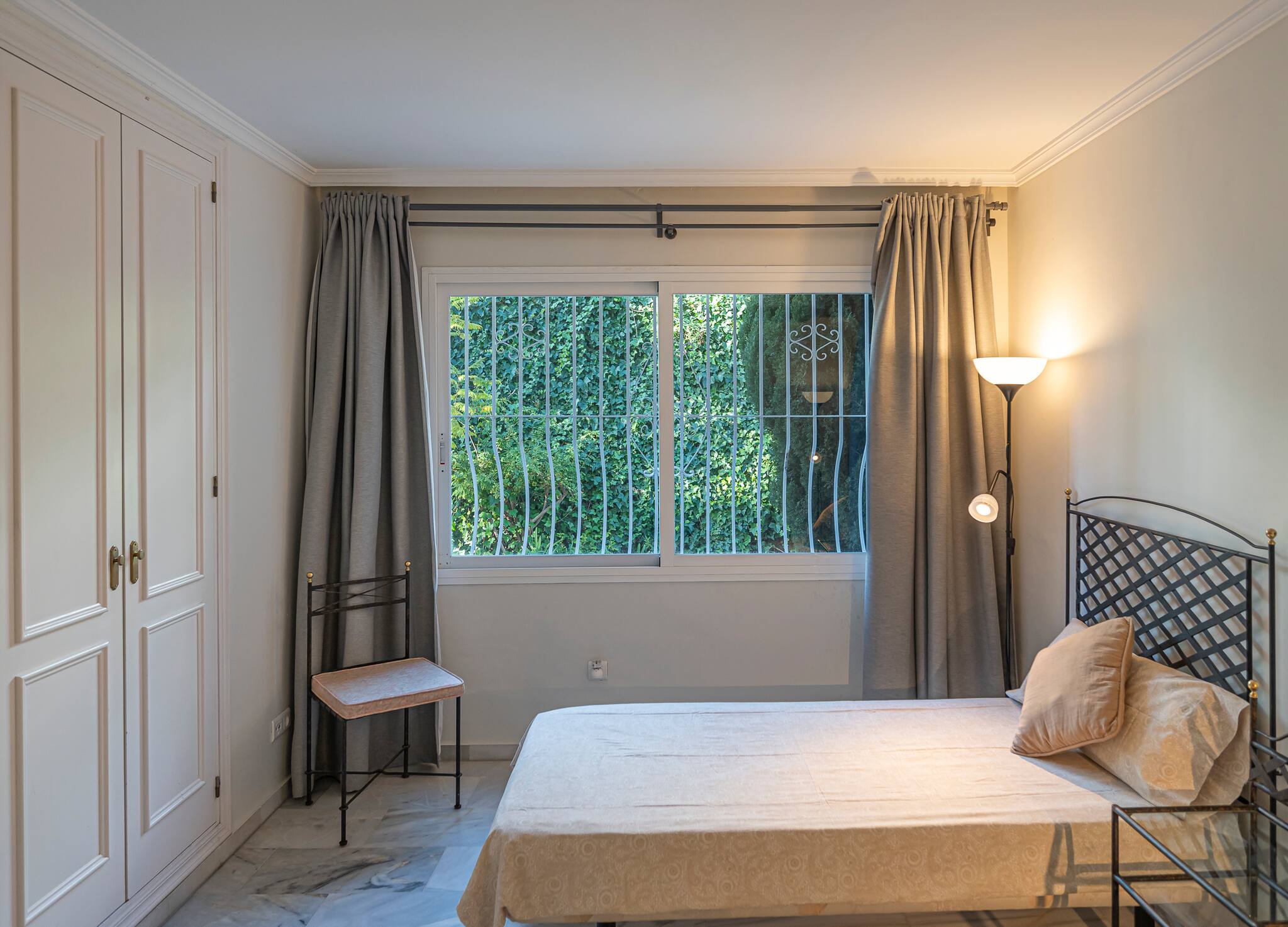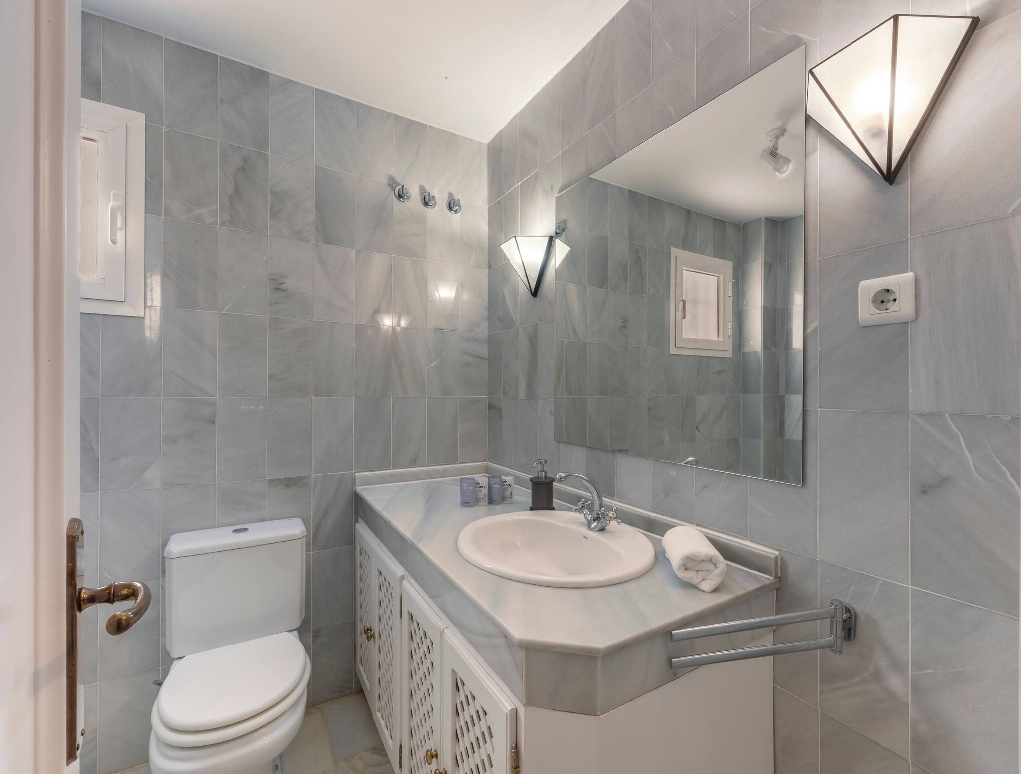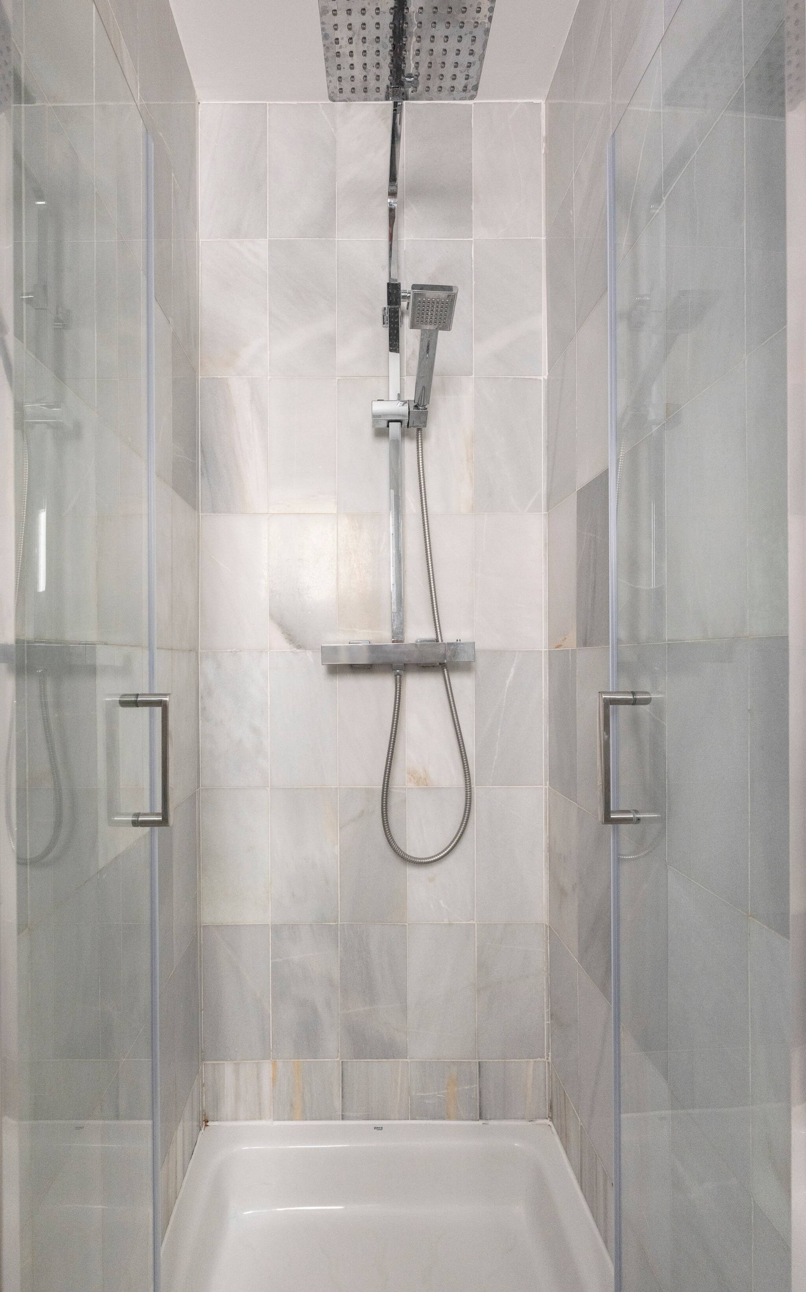 In total, the apartment has two beautiful bathrooms (one ensuite): complete and with ample washbasin, toilet and shower space. One of them also has a bidet and bathtub.
