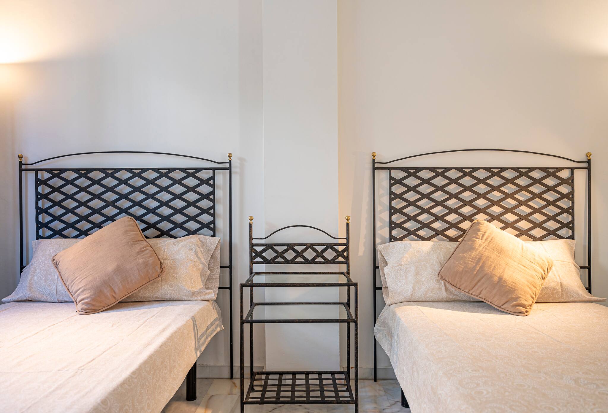 🛏️ 2nd Bedroom: Bright space with two single beds together, modern decorative details, and a relaxing atmosphere for a restful night's sleep.