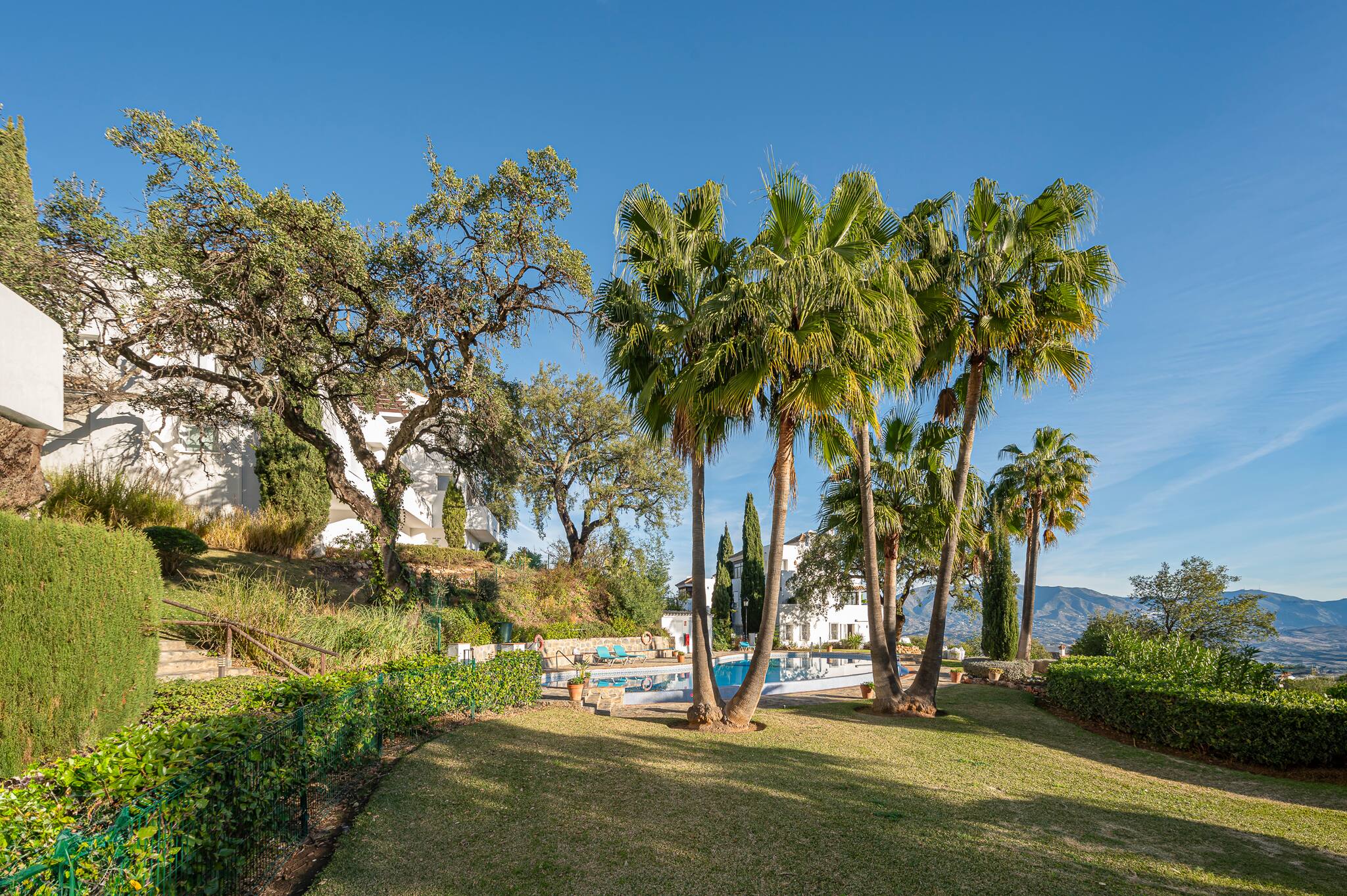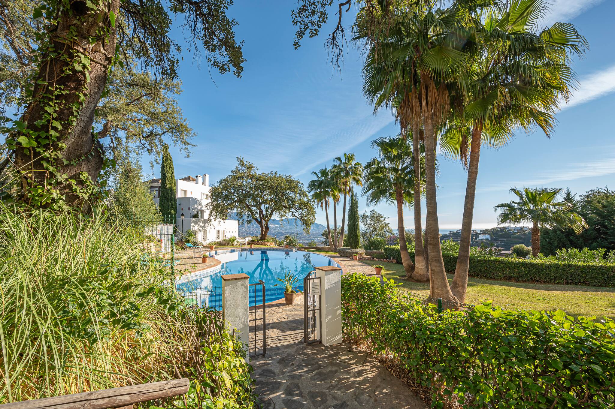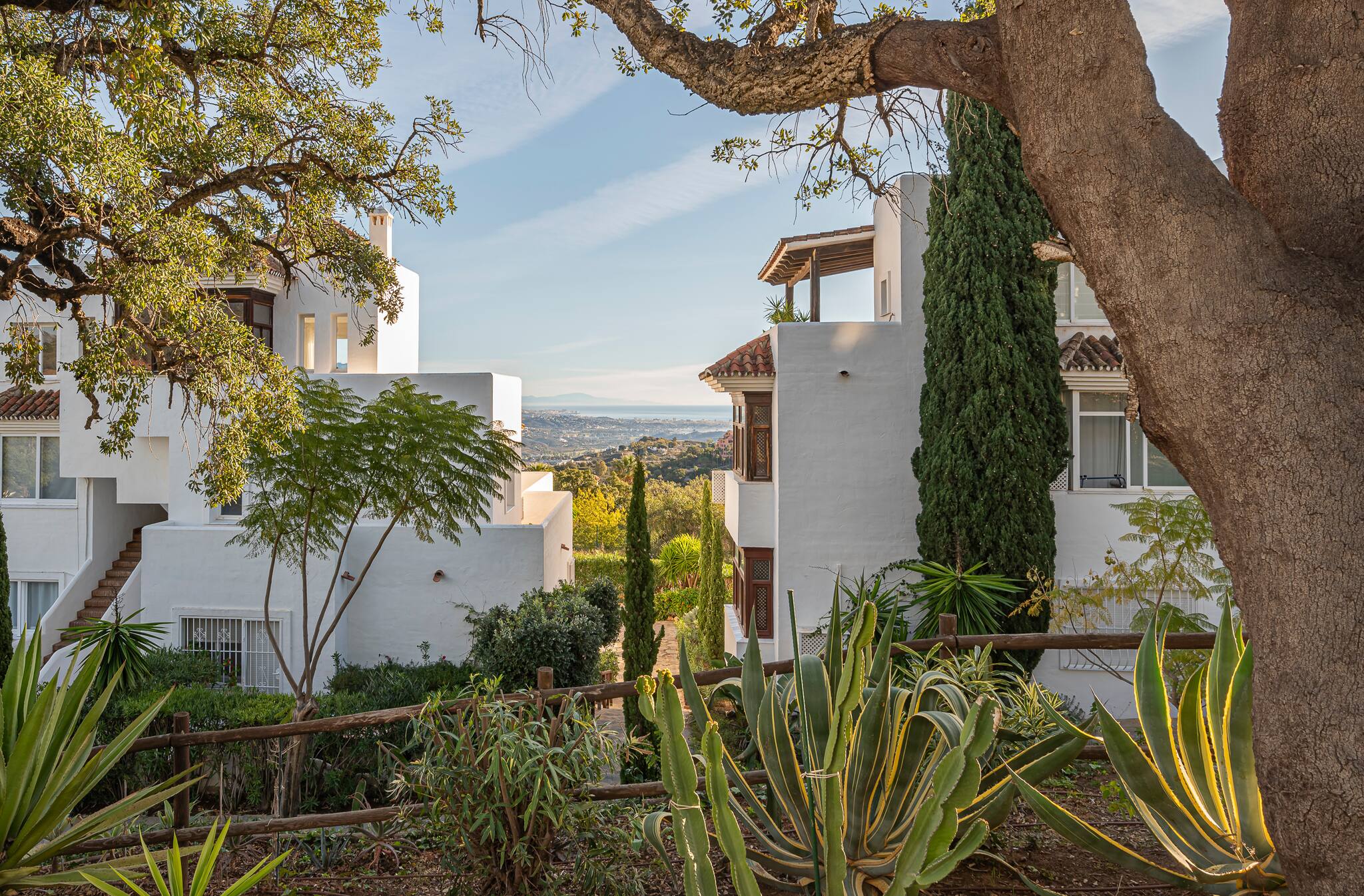 In 1987, La Mairena was born. Developed by the Massoud family, who have dedicated themselves to maintaining this exclusive and beautiful residential complex immaculately maintained to the highest standards. They have committed to building on only 5% of the land, to ensure large green areas with protected oak trees and pine trees accompanying this magnificent retreat in the hills. The impressive Andalusian architecture blends perfectly with the facades and colours of the houses, and the surrounding mountains bring us closer to the Mediterranean Sea. A stone's throw from the coast, the famous city of Marbella and Puerto Banus, this cosy hideaway with its infinite beauty, peace and tranquillity, is a guaranteed heaven for a holiday.