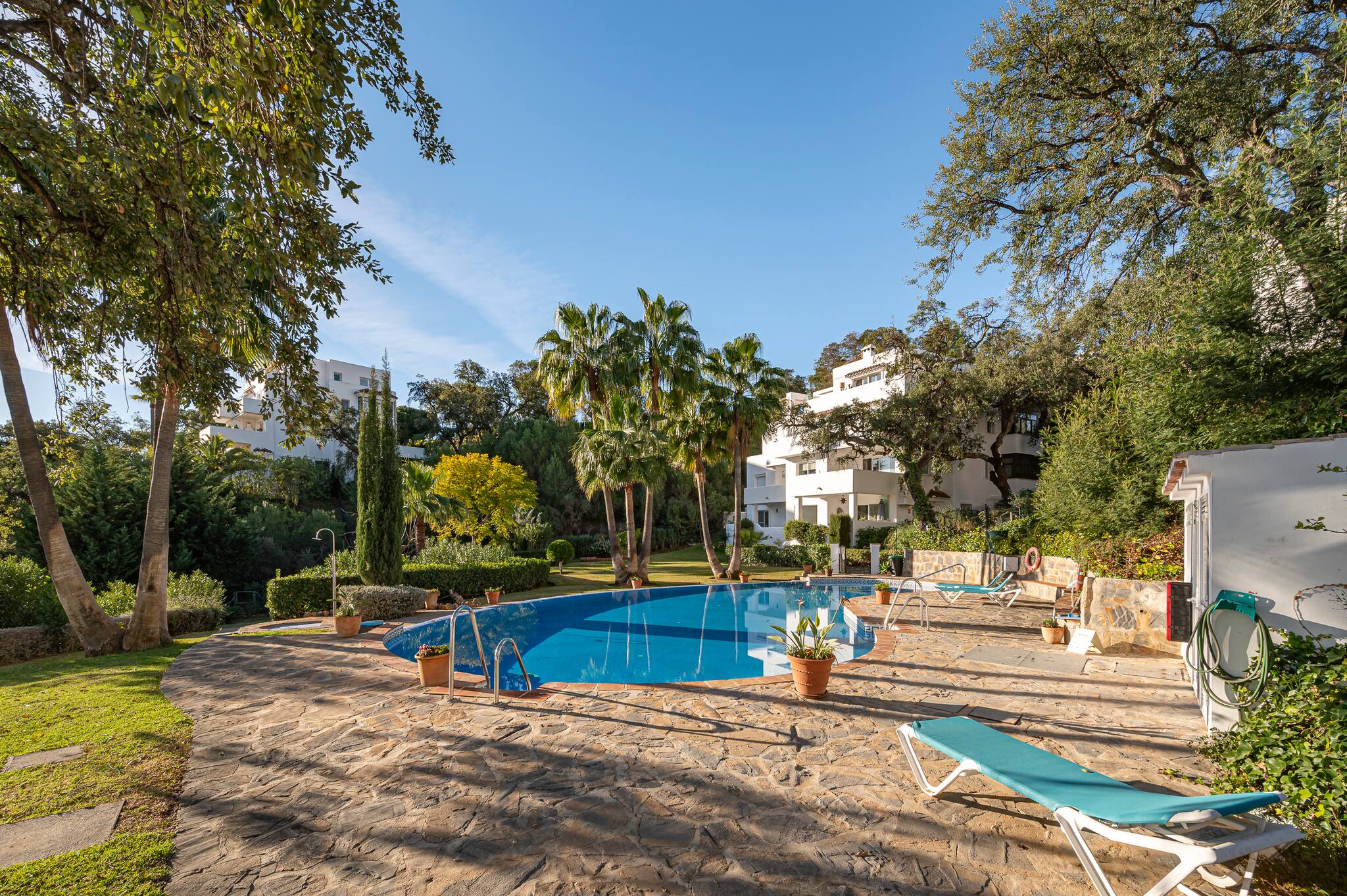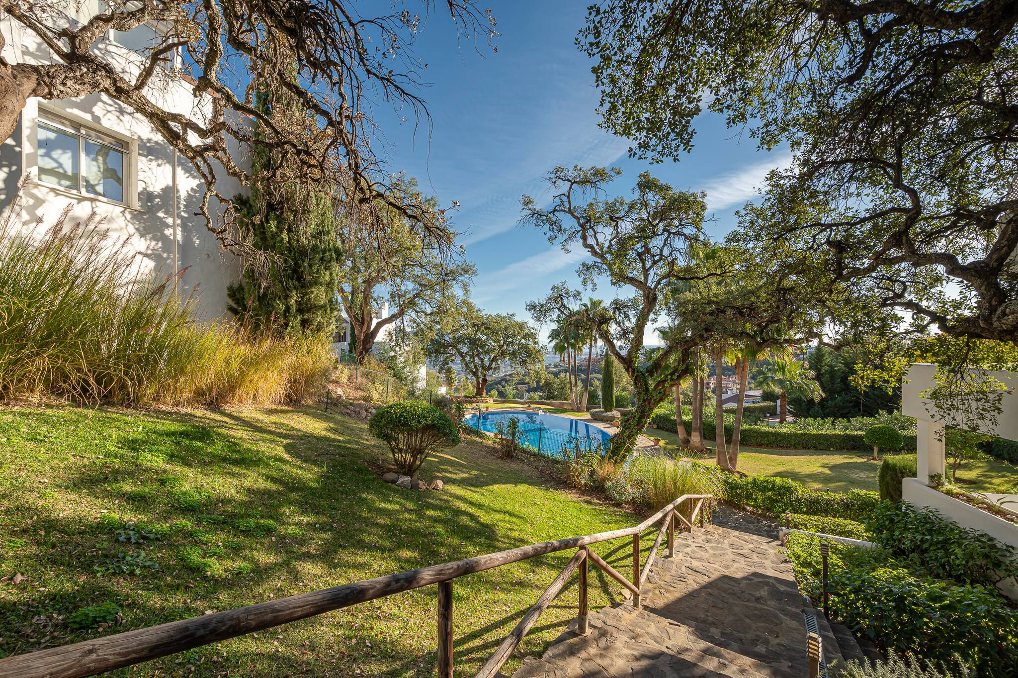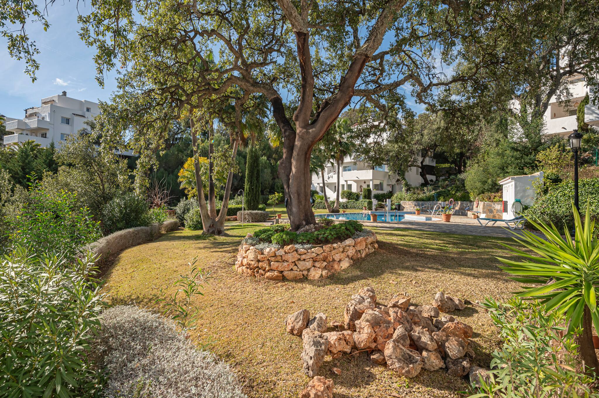 In 1987, La Mairena was born. Developed by the Massoud family, who have dedicated themselves to maintaining this exclusive and beautiful residential complex immaculately maintained to the highest standards. They have committed to building on only 5% of the land, to ensure large green areas with protected oak trees and pine trees accompanying this magnificent retreat in the hills. The impressive Andalusian architecture blends perfectly with the facades and colours of the houses, and the surrounding mountains bring us closer to the Mediterranean Sea. A stone's throw from the coast, the famous city of Marbella and Puerto Banus, this cosy hideaway with its infinite beauty, peace and tranquillity, is a guaranteed heaven for a holiday.