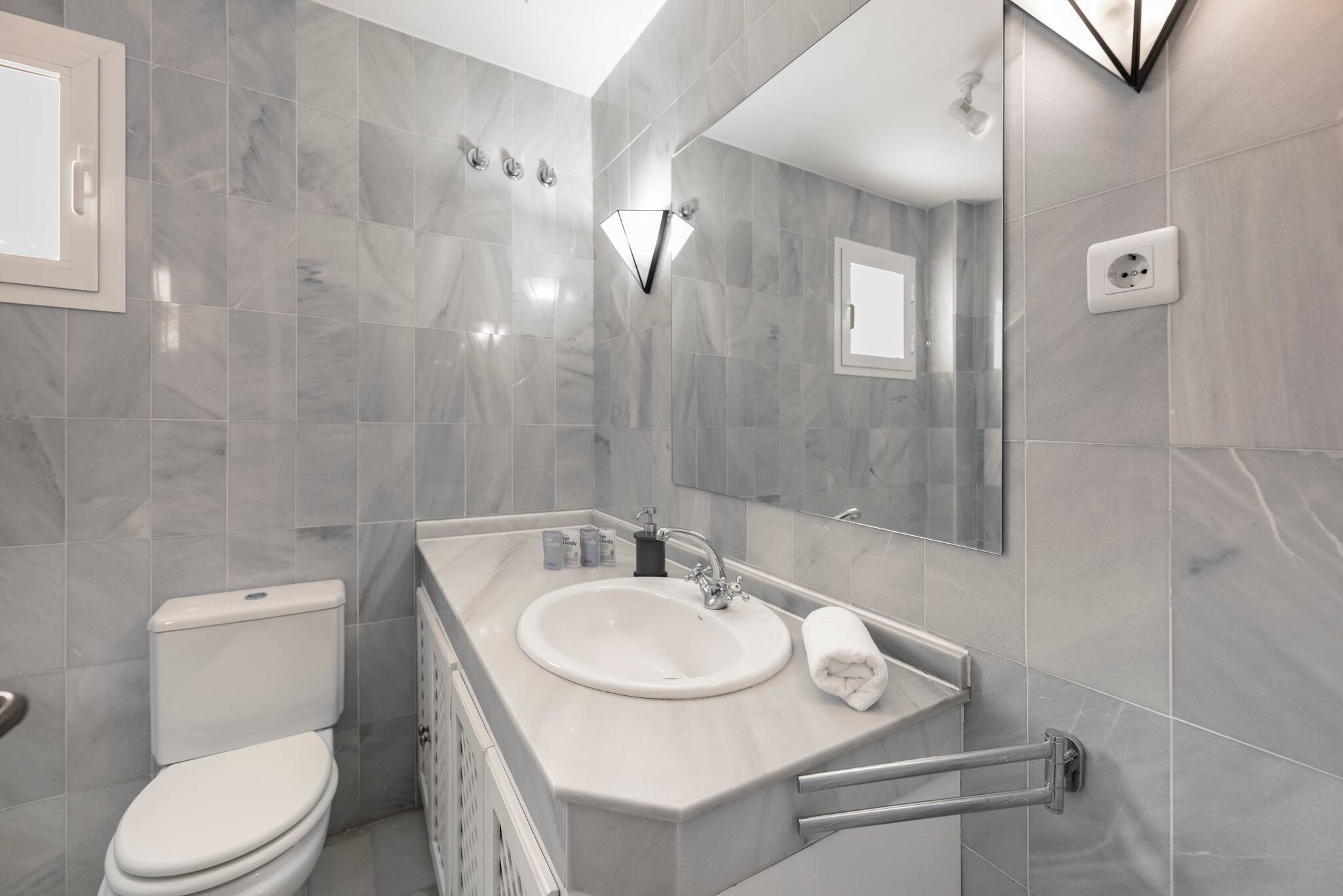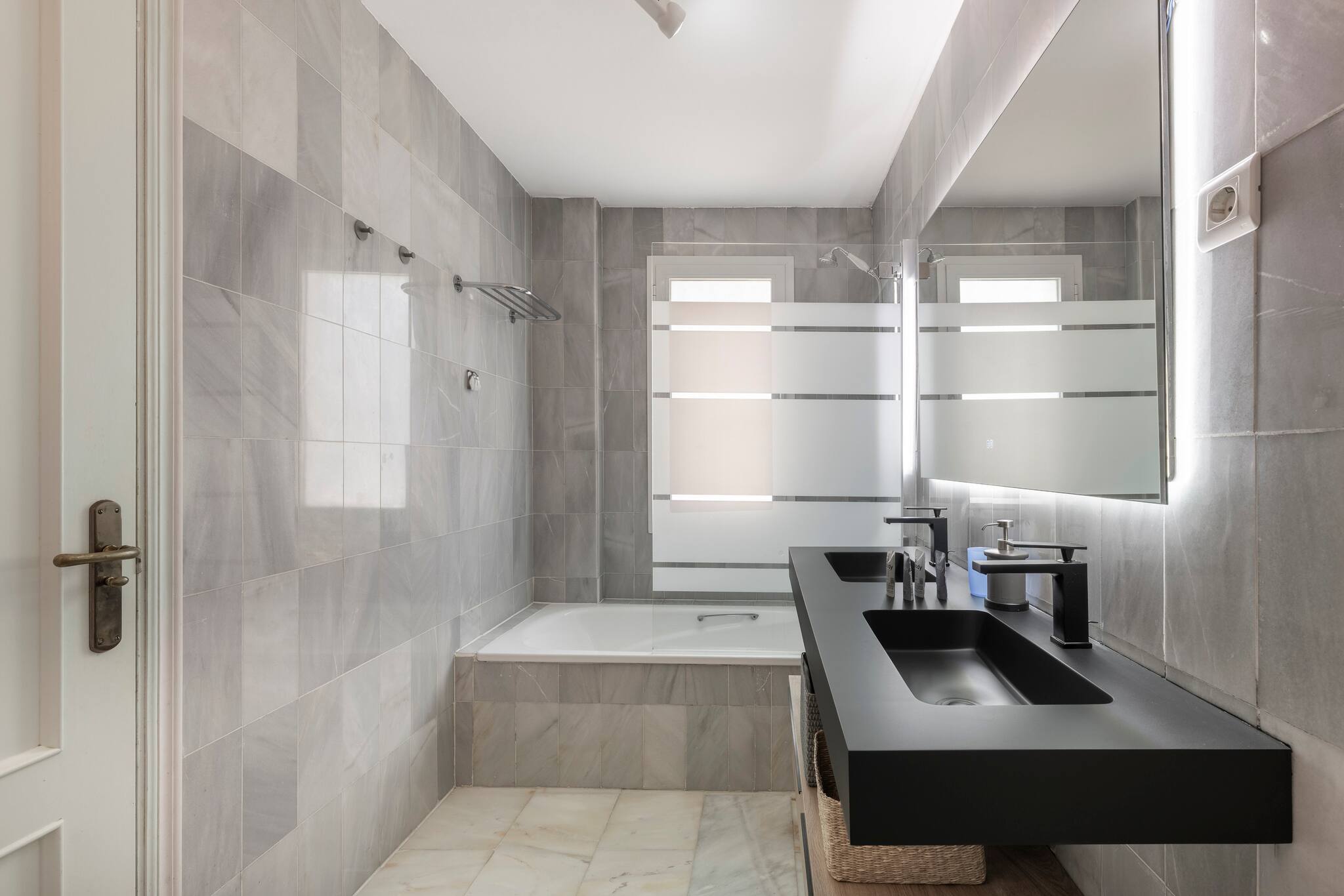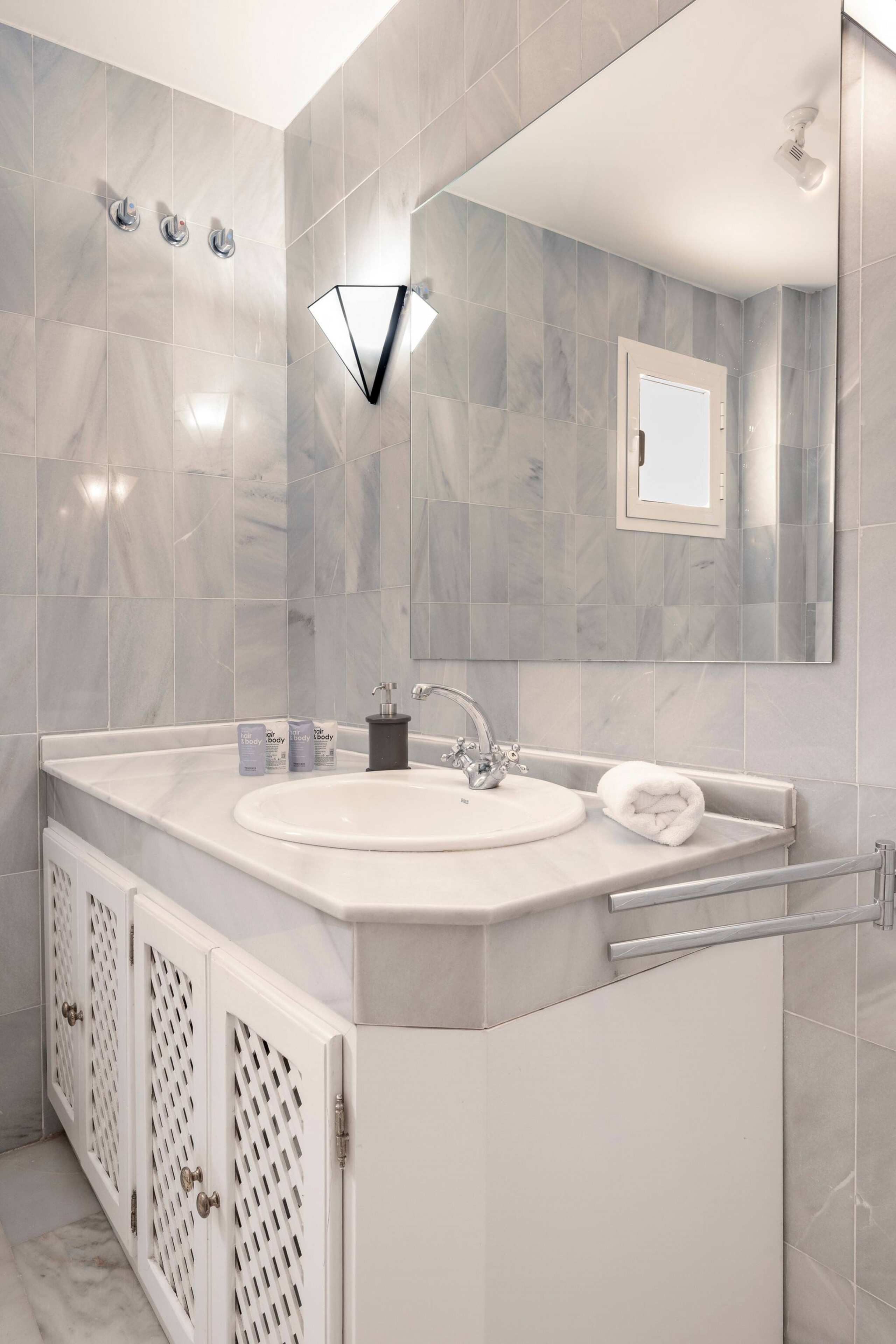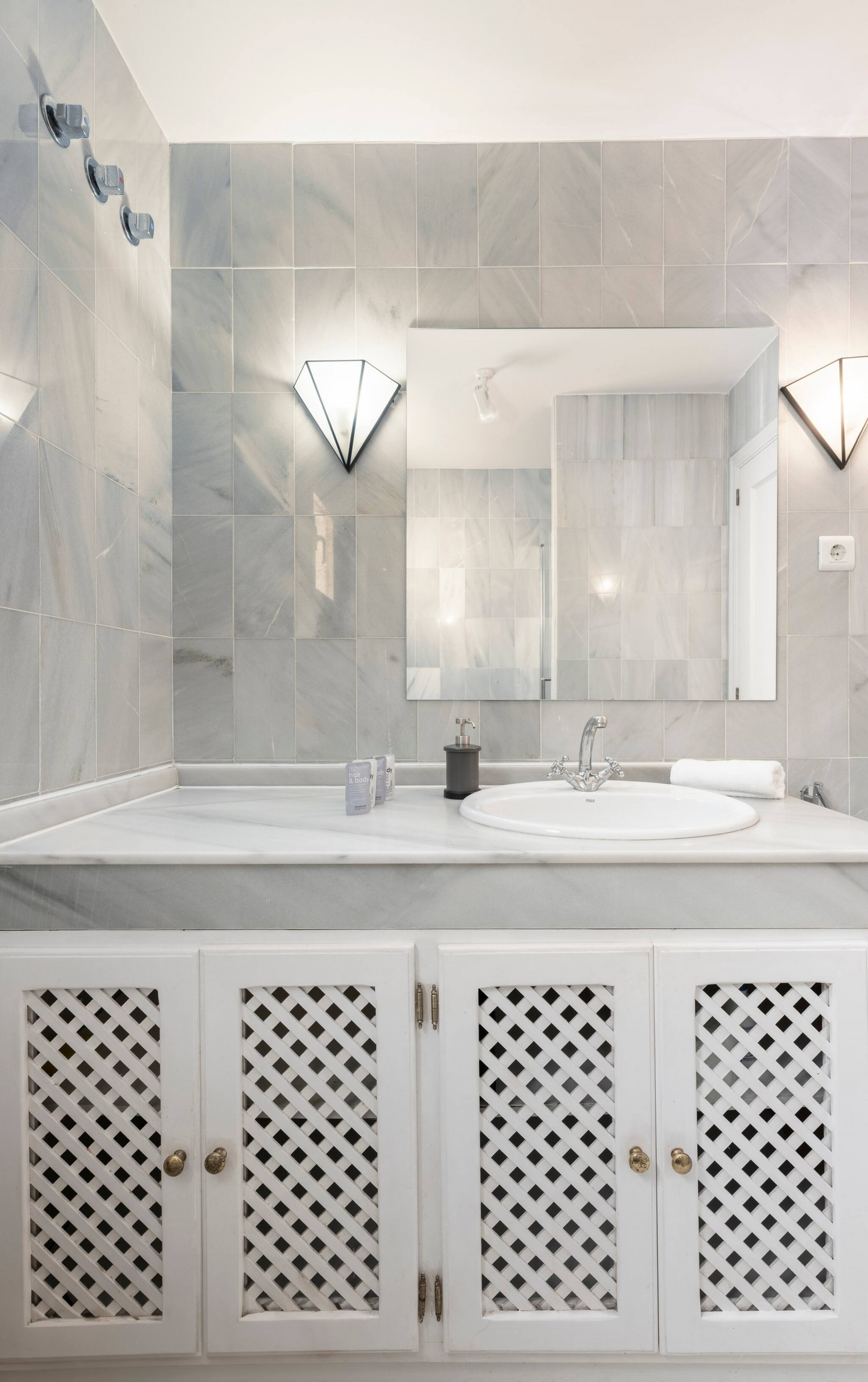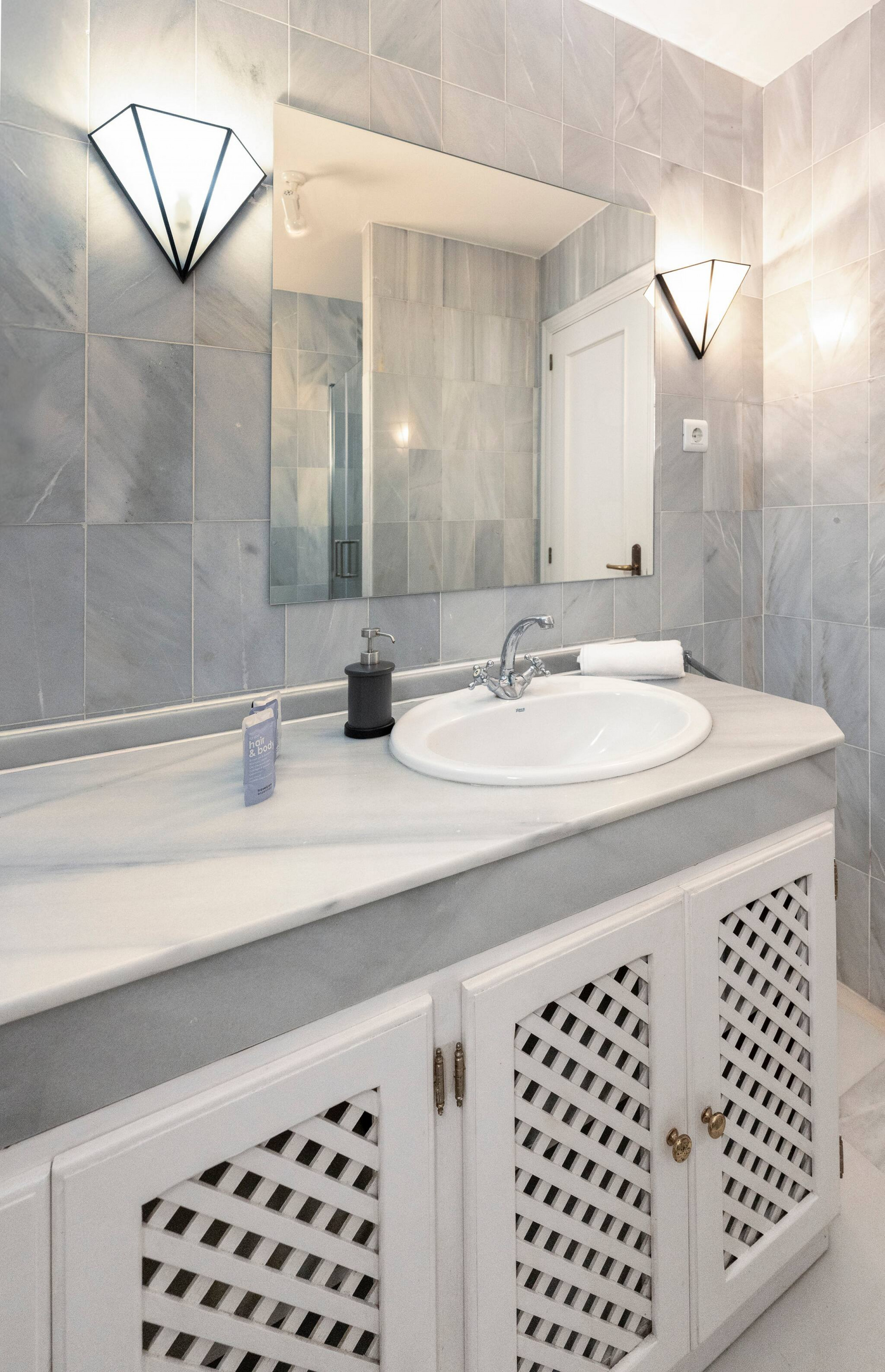 🚿 Bathrooms: Both are elegantly designed with high-quality finishes. The main bathroom includes a rain shower and double sink.