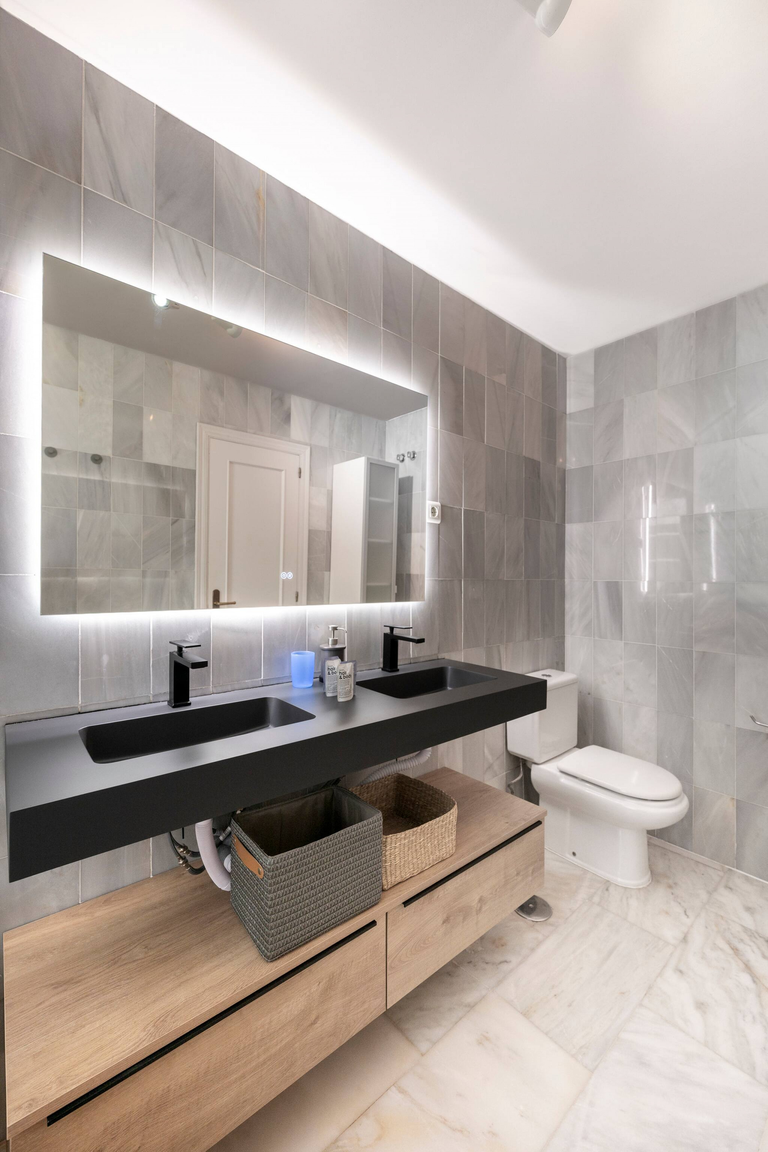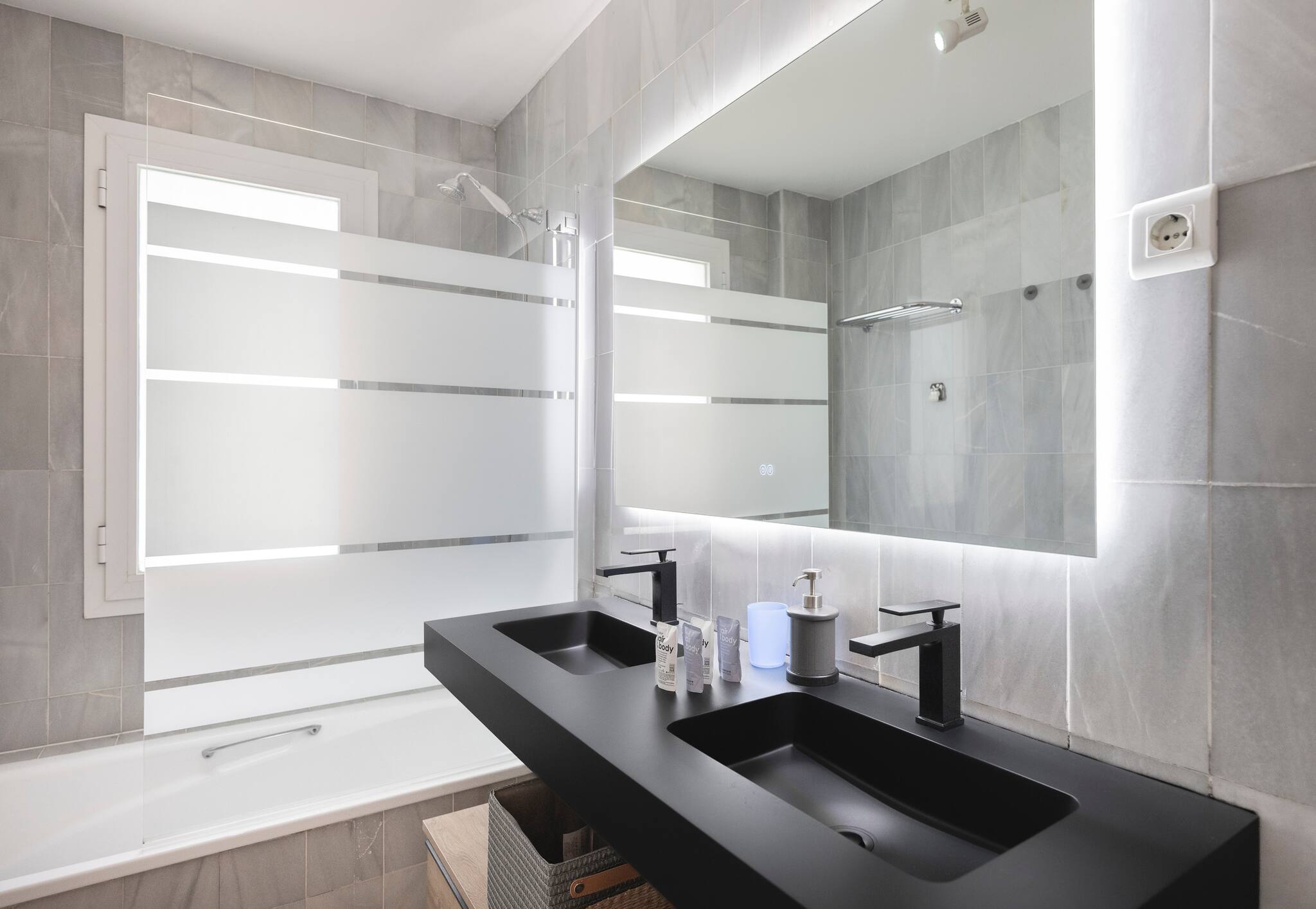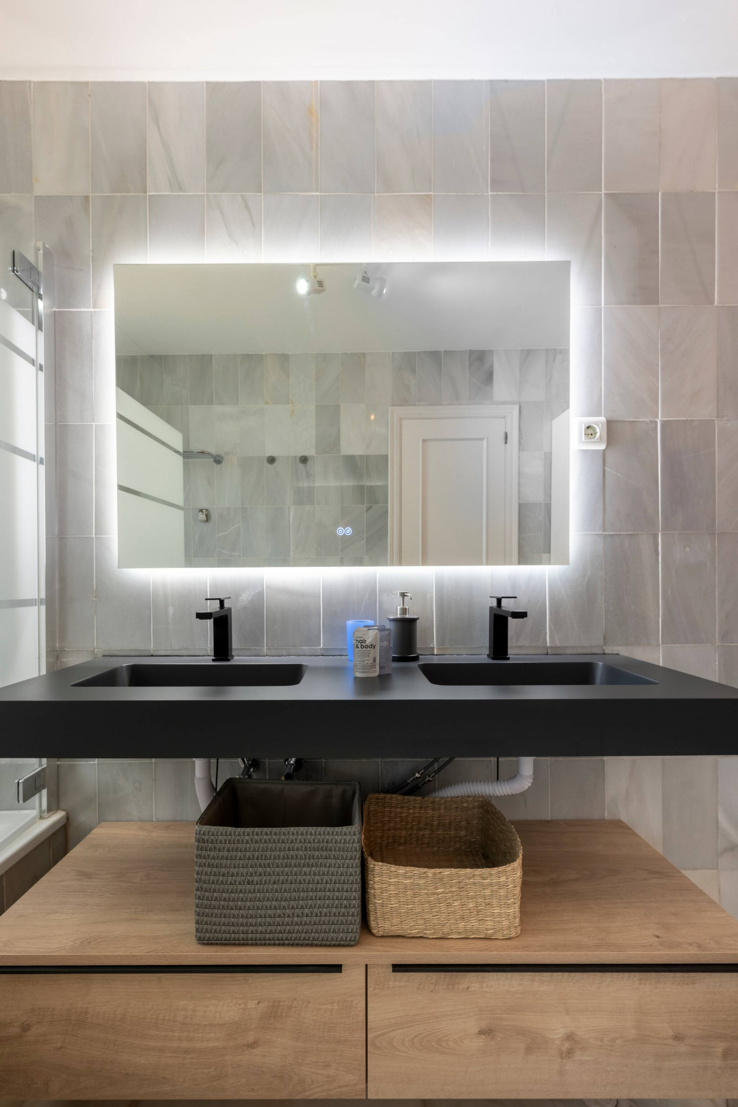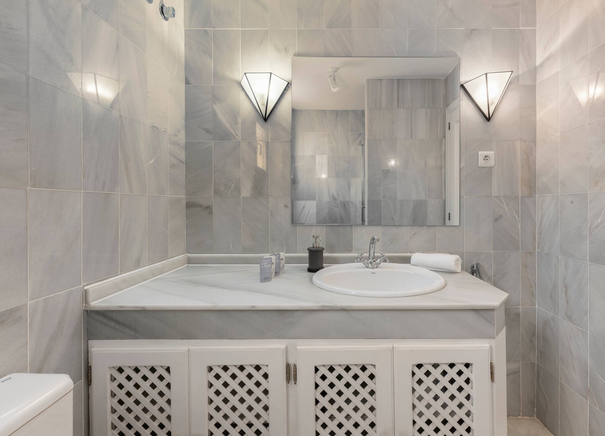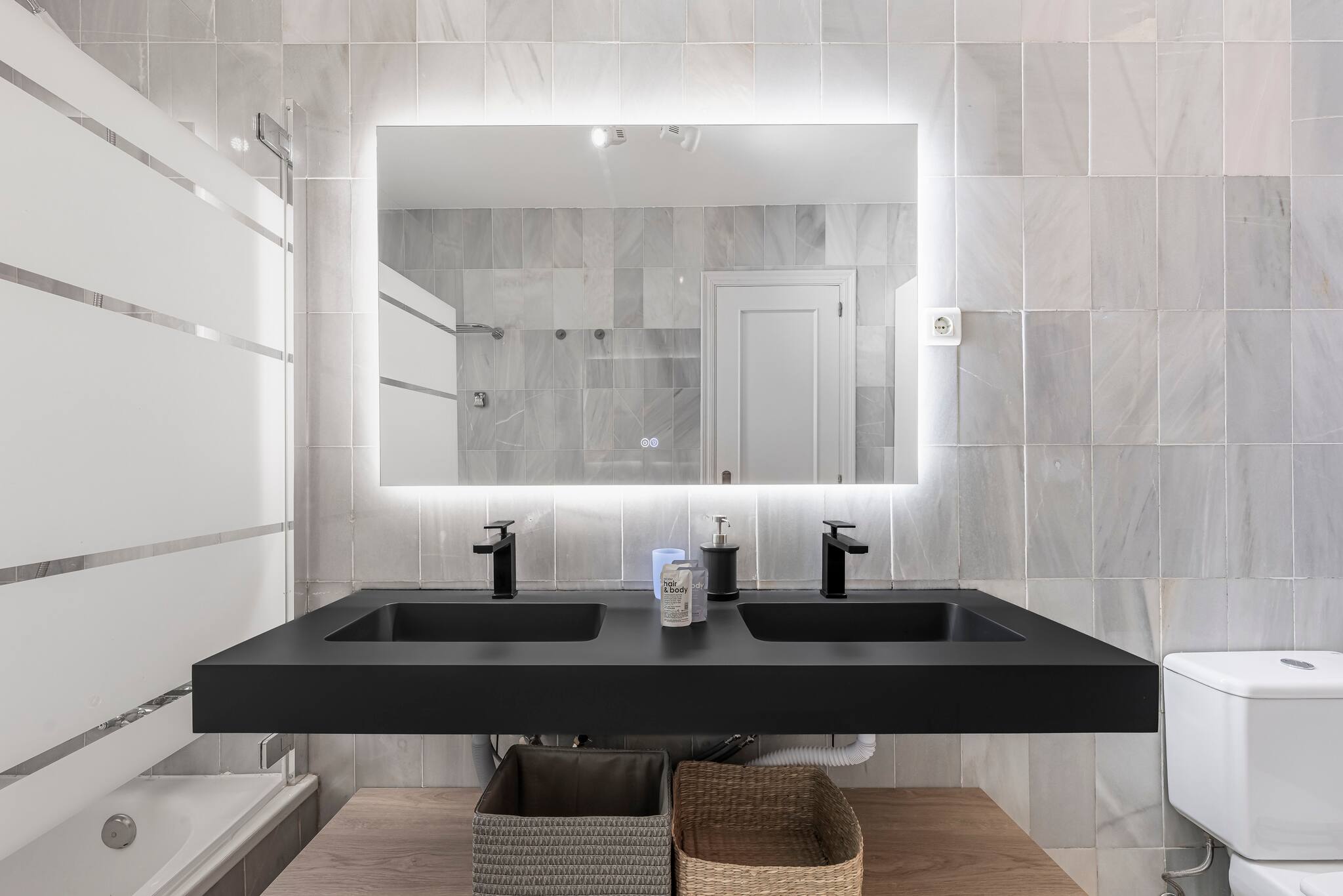🚿 Bathrooms: Both are elegantly designed with high-quality finishes. The main bathroom includes a rain shower and double sink.