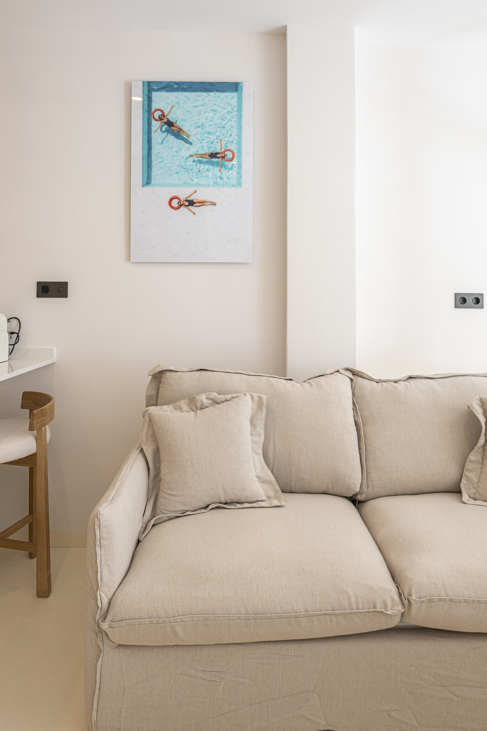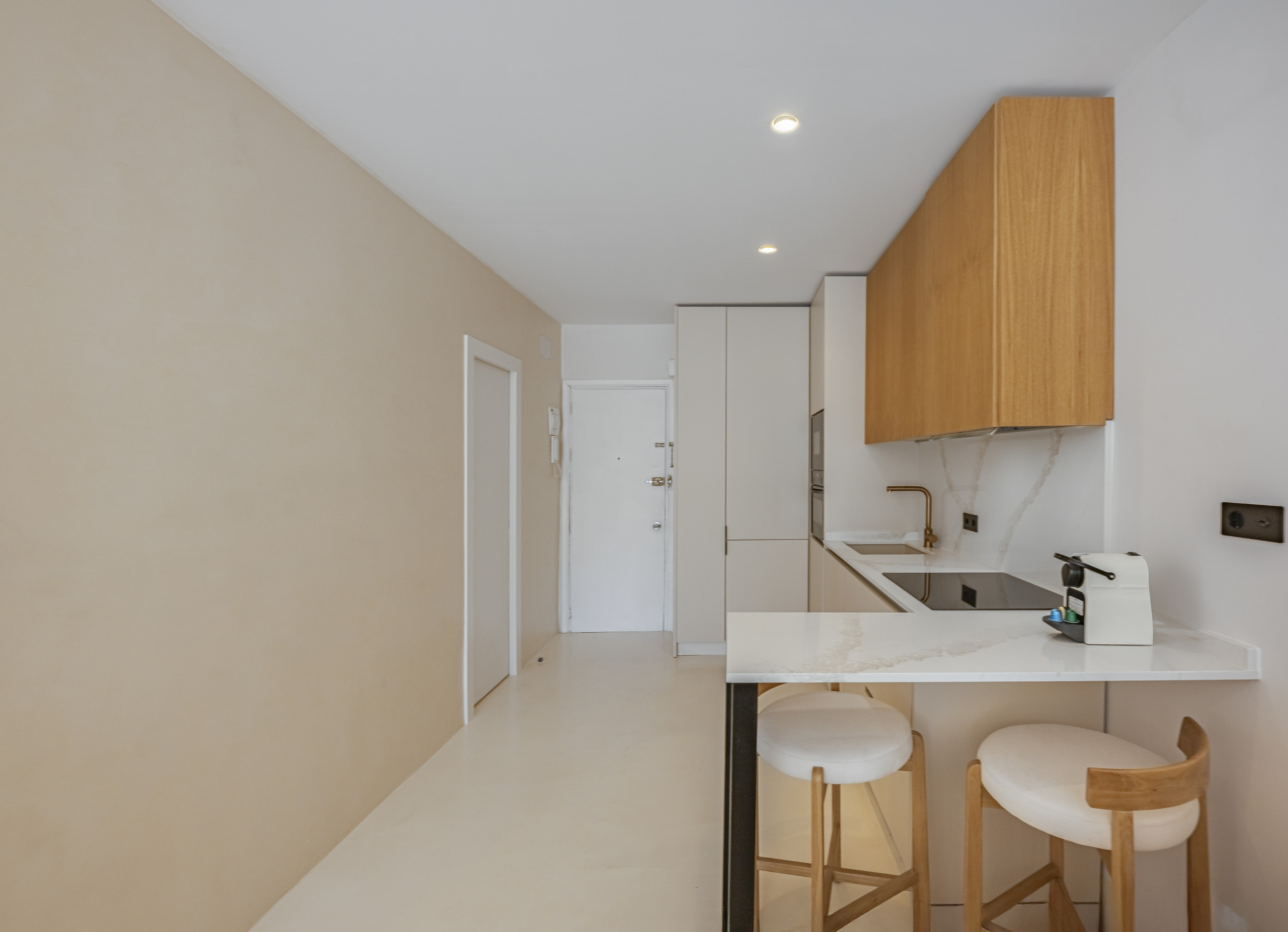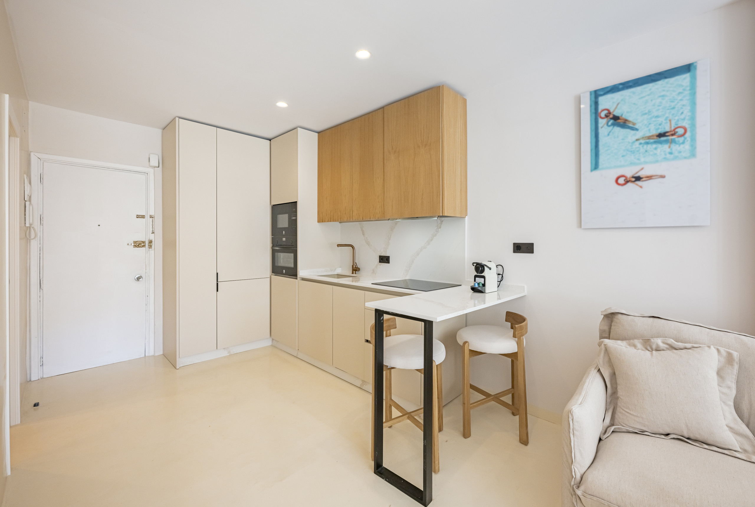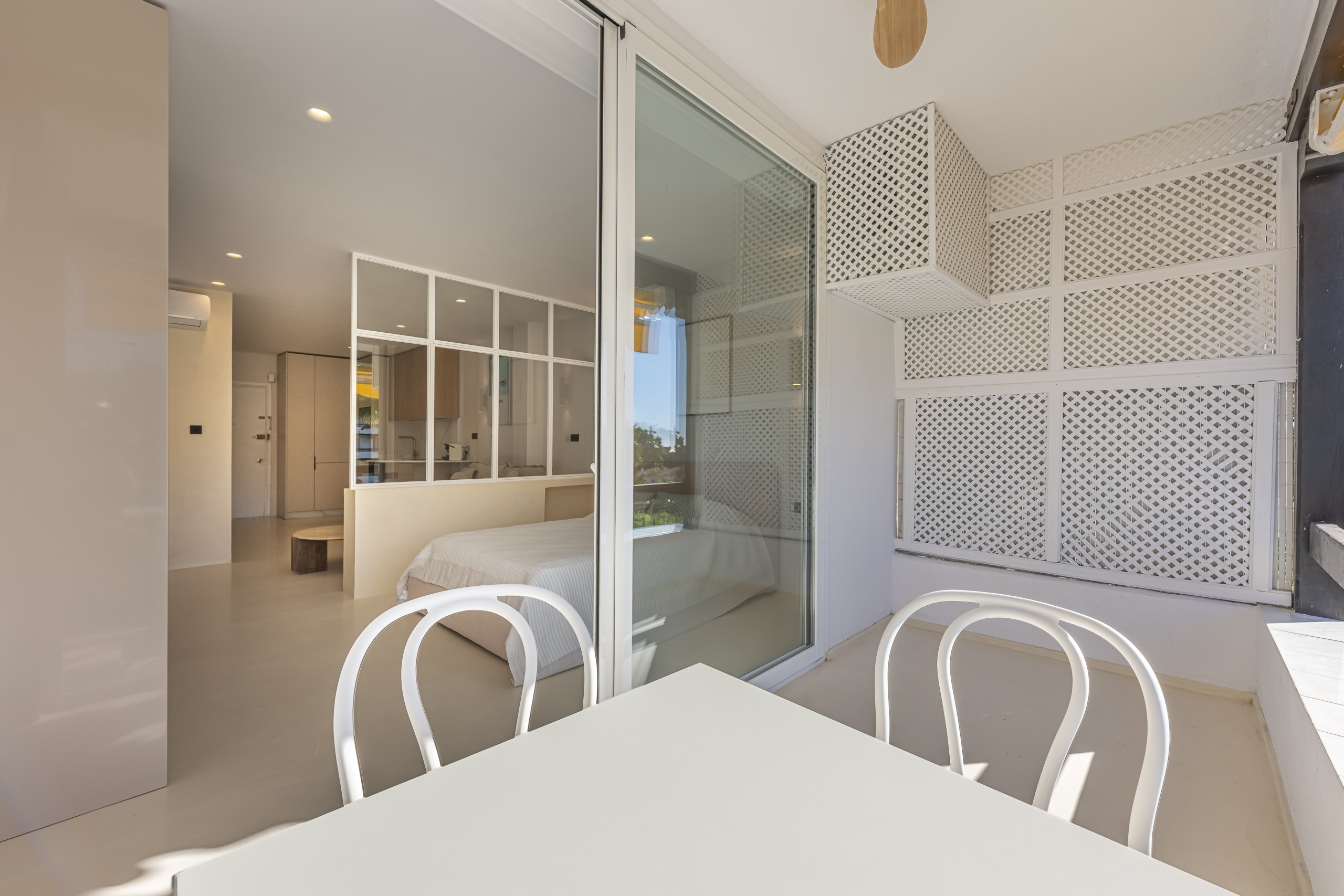 A flirtatious studio in Nueva Andalucía (Aries Street) is the perfect refuge for families, combining a modern open-concept design with exceptional warmth. With capacity for 4 people, the space stands out for its luminosity and Nordic and Mediterranean aesthetic, with finishes in cream tones and wood that invite relaxation.