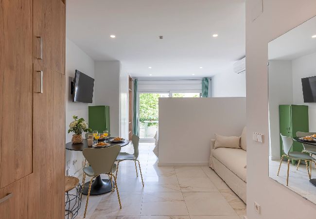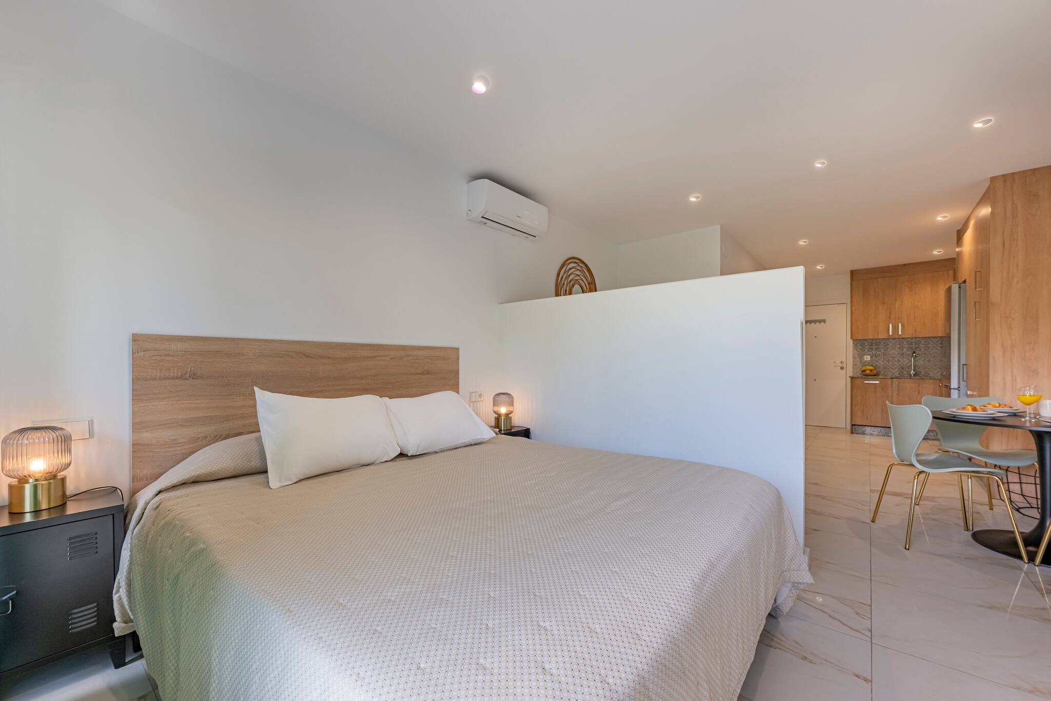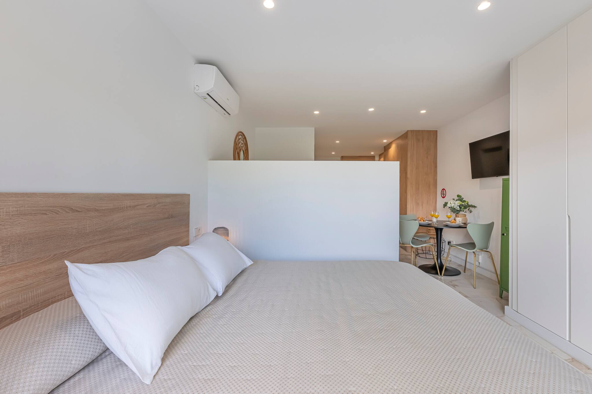 A flirtatious studio in Nueva Andalucía (Aries Street) is the perfect refuge for families, combining a modern open-concept design with exceptional warmth. With capacity for 4 people, the space stands out for its luminosity and Nordic and Mediterranean aesthetic, with finishes in cream tones and wood that invite relaxation.