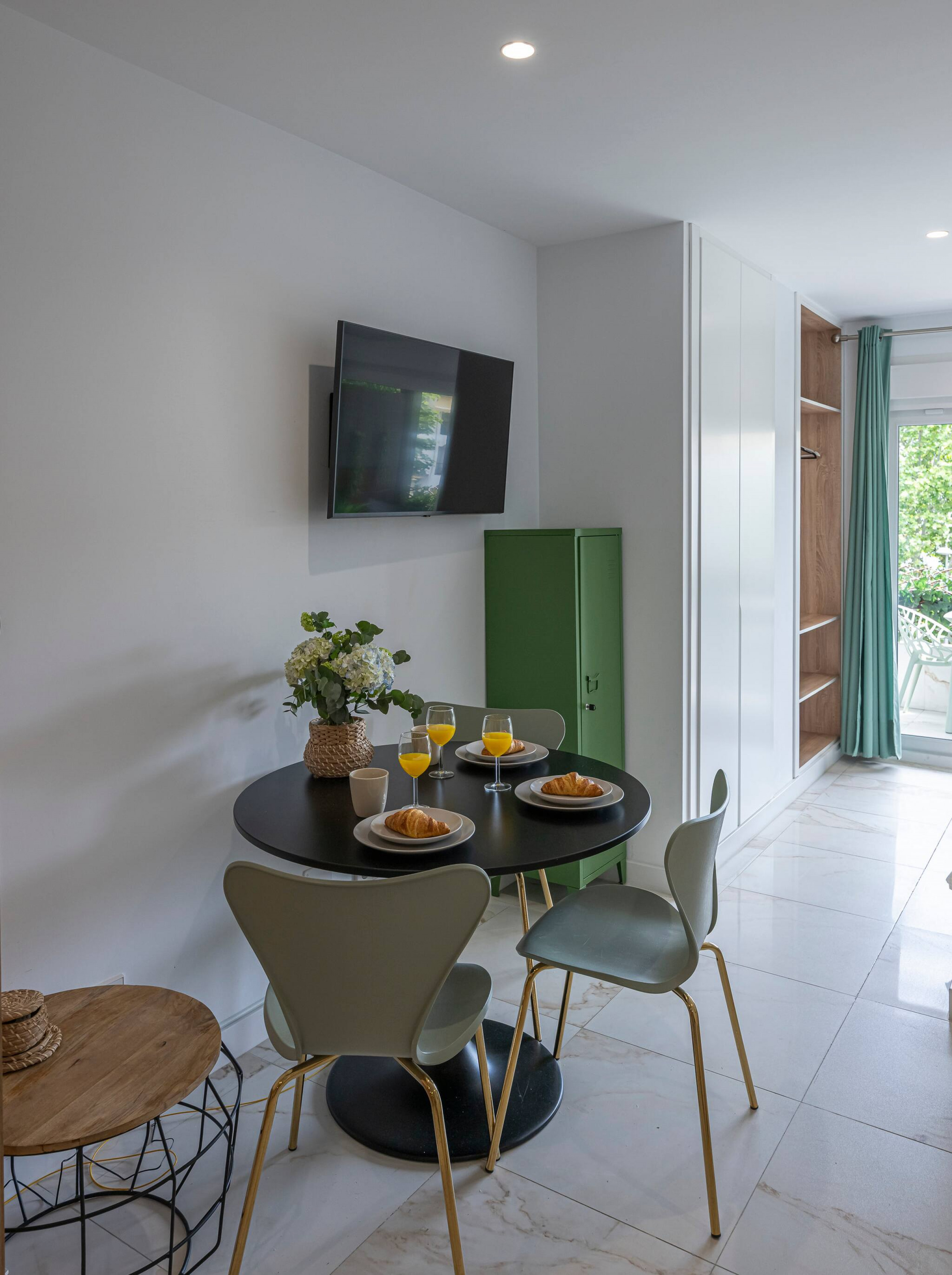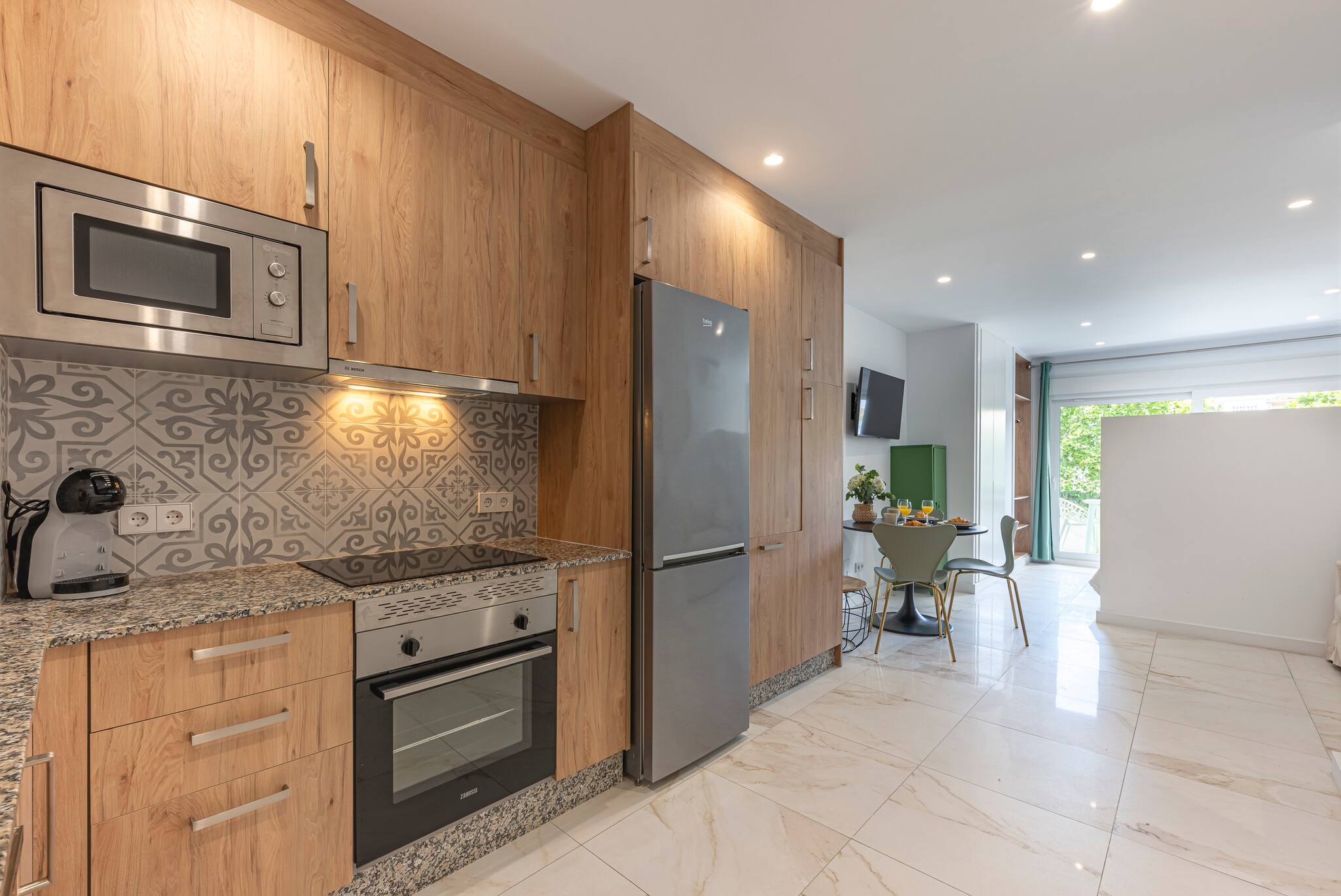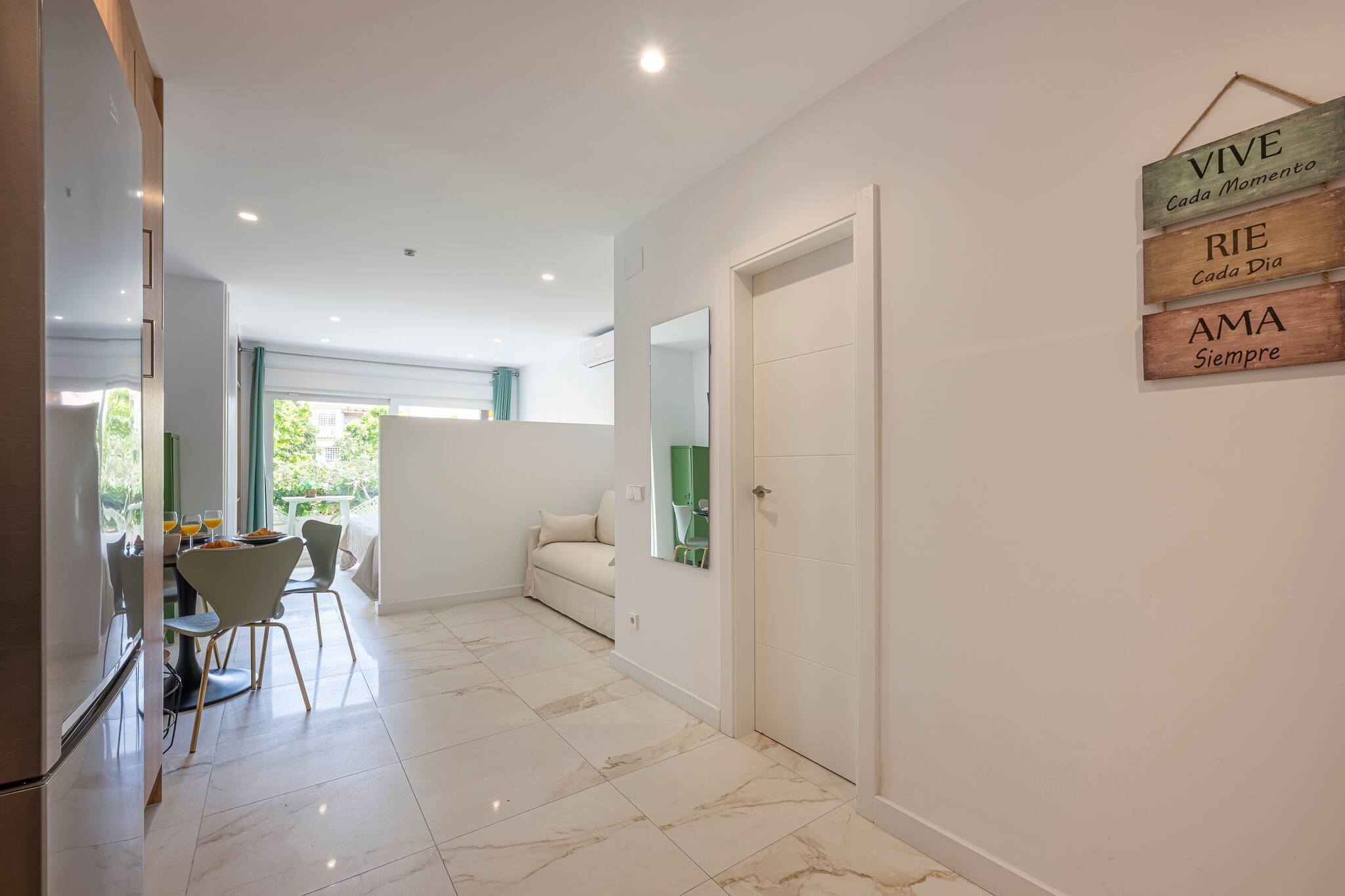 A flirtatious studio in Nueva Andalucía (Aries Street) is the perfect refuge for families, combining a modern open-concept design with exceptional warmth. With capacity for 4 people, the space stands out for its luminosity and Nordic and Mediterranean aesthetic, with finishes in cream tones and wood that invite relaxation.
